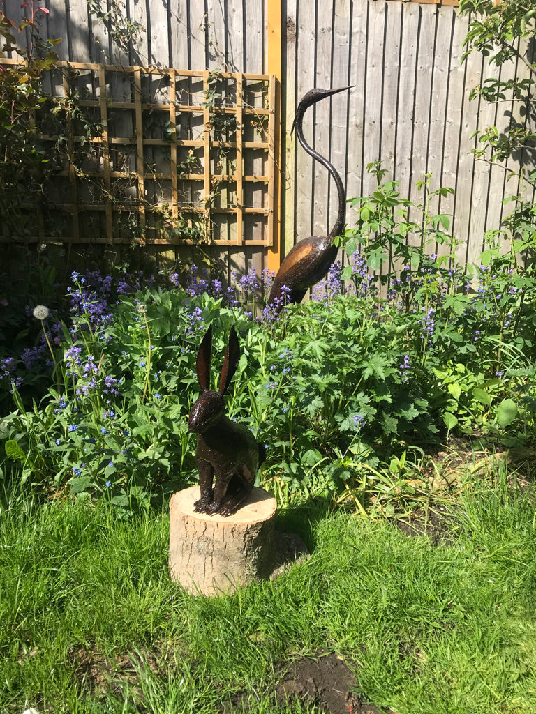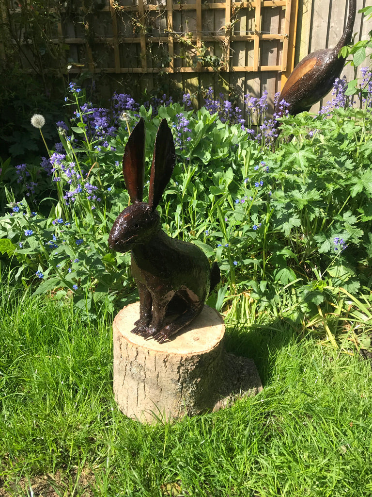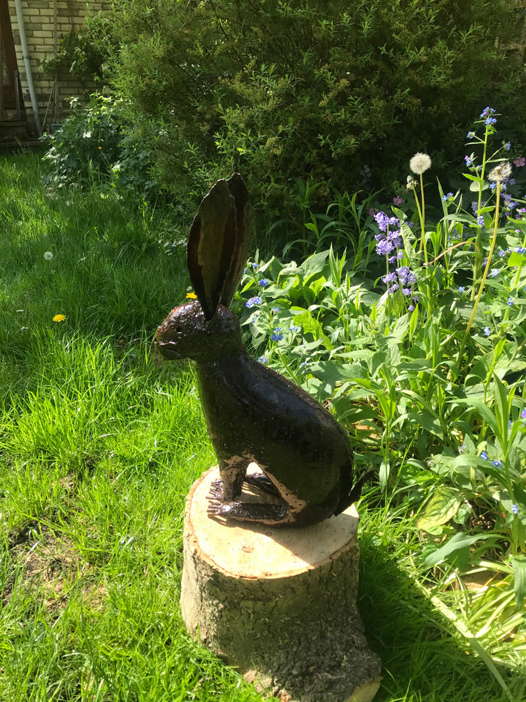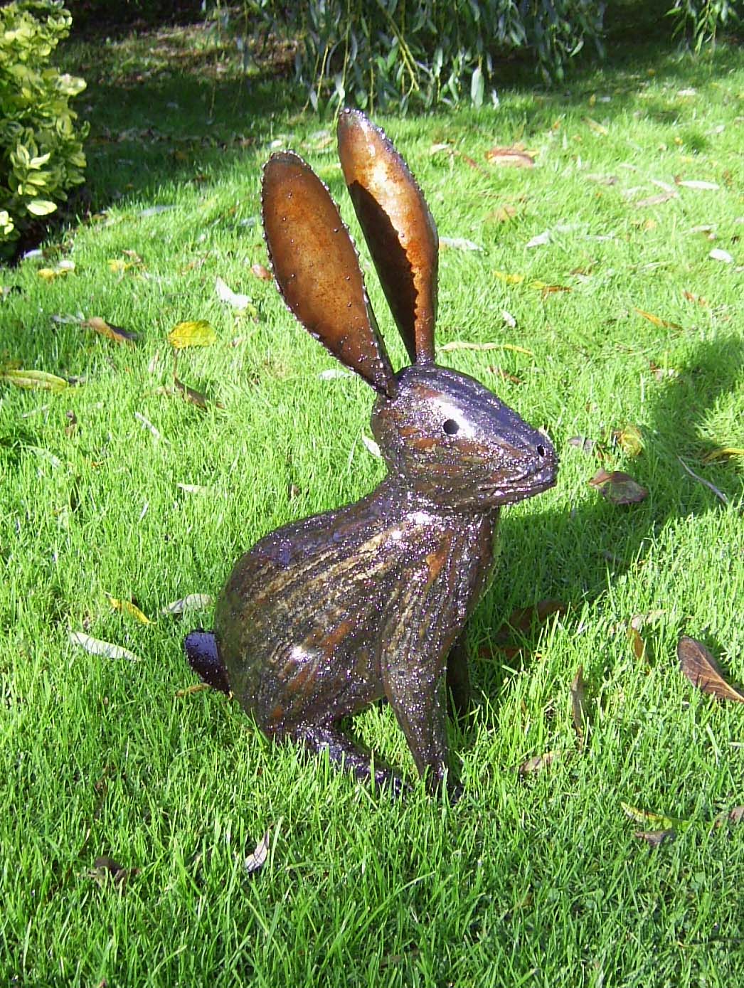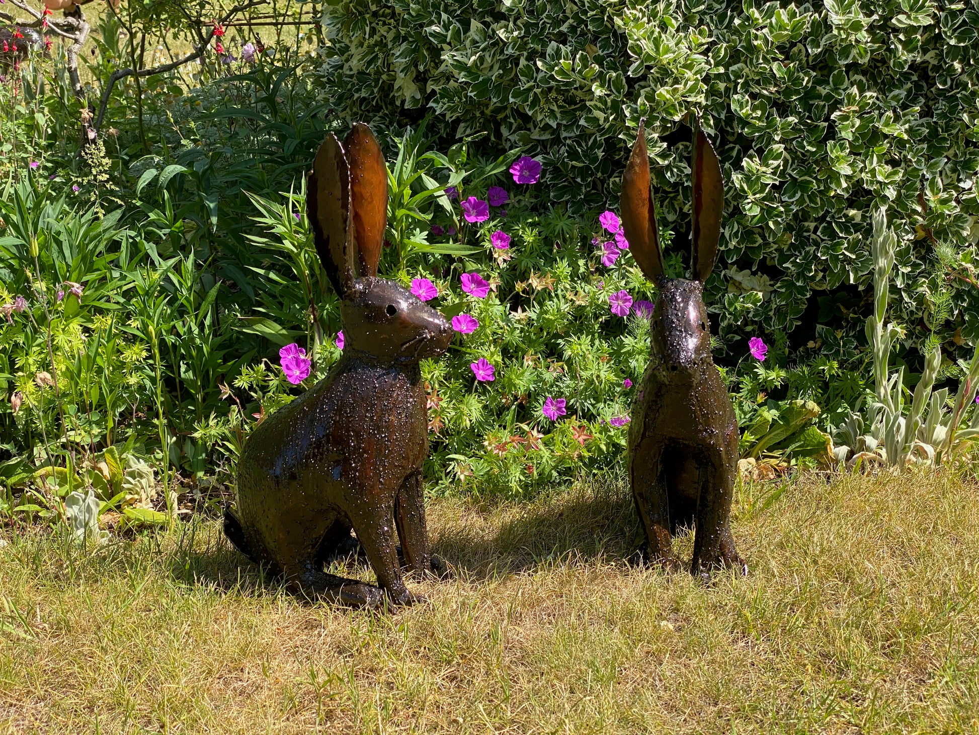 Made of recycled metal, this cheeky sitting rabbit is wonderfully realistic - you might have to look twice to check it's not real!